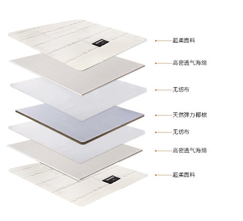天然弹力椰棕,经高温处理,透气性好,防潮、能很好的贴合人体,健康舒适。