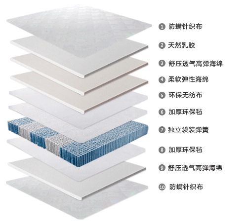 防螨针织面料,独特的褥层式设计,可以更好的贴合人体曲线,让舒适雅致而又自然的生活伴您左右。